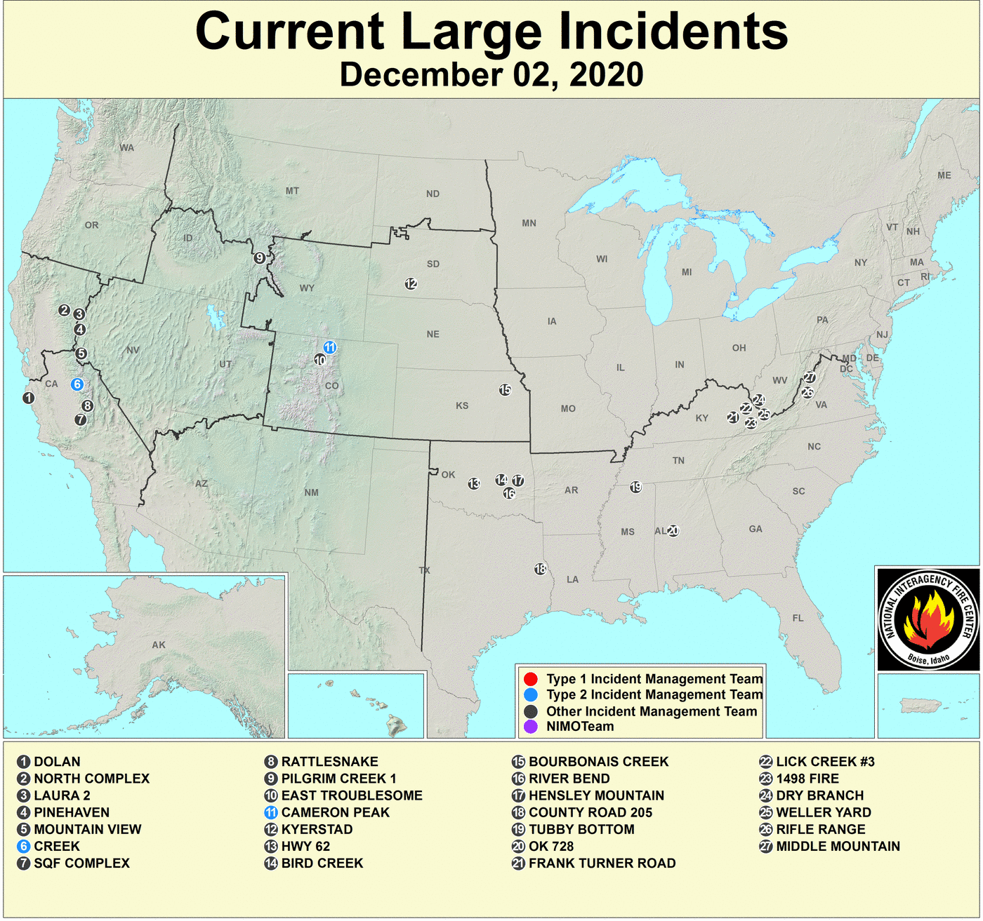 Fire locations are based on data provided by the National Interagency Coordination Center and are subject to change.